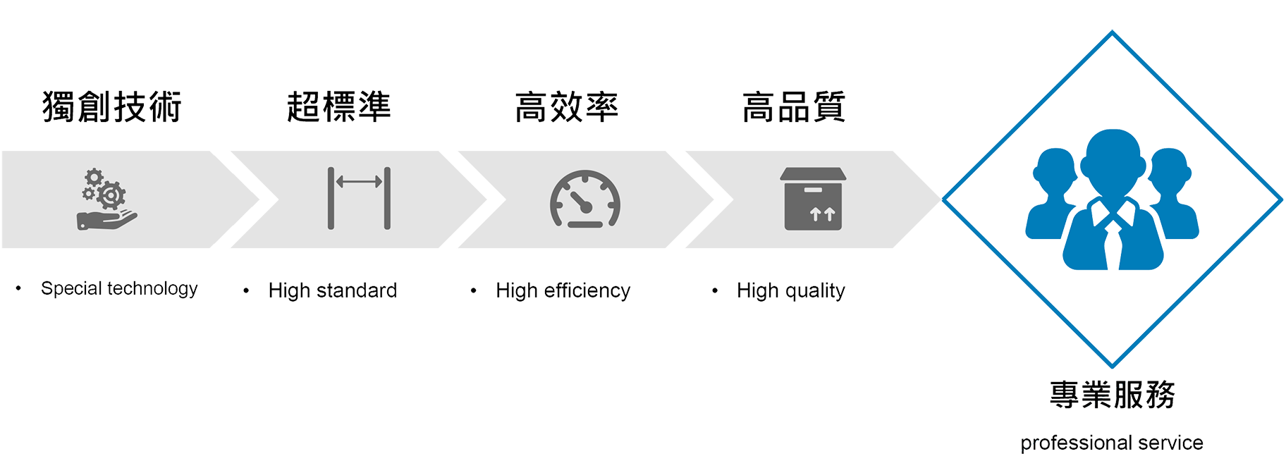 金奕豐科技有限公司本著「服務第一、品質第一及效率第一」的理念,除致力於純水管線、 機體管路及其他管件加工外,更包含不鏽鋼品的高精密淨油處理;專業的技術及品質管理深得台 積電、聯華電子及各家科技公司的信賴,在品質價值上遠遠高於同業的水準。